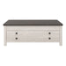 Élevez la barre du design de ferme moderne avec cette table basse polyvalente. Arborant une palette de couleurs bicolores, grises et blanches antiques et un design croisé, la "porte de grange" coulissante unique de la table se déplace pour révéler un espace de rangement sur étagères. Les roulettes faciles à rouler ajoutent une touche cool qui est tout à fait tendance.