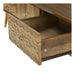 • Les détails de conception frappants incluent: Une texture ondulée sur 2 façades de tiroir; accents dorés sur les pattes en bois massif; boutons en métal brossé au fini or; glissières de tiroir en métal; et intérieurs finis dans toutes les zones de rangement